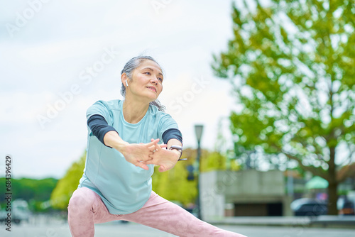 屋外で運動するシニア女性