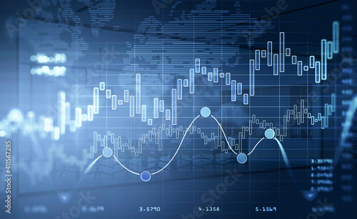 Financial chart over worldwide map. The concept of international consulting and worldwide transactions.