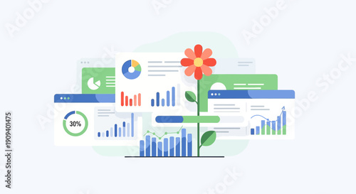 Financial Growth Concept: Blooming Flower on Data Charts Background