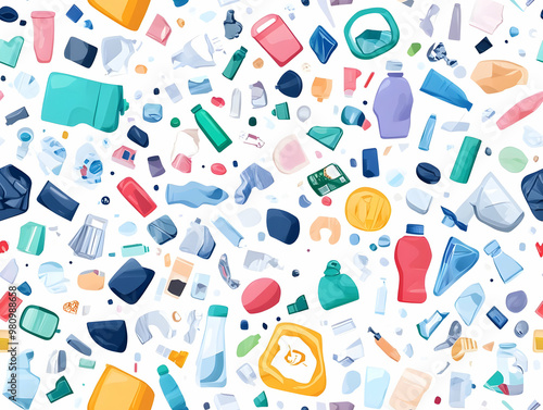 Flat Recycled Glass Elements: Seamless Vector Design Symbolizing Sustainability for New Year 2025, Perfect for Eco-Friendly Infographics and Business Presentations