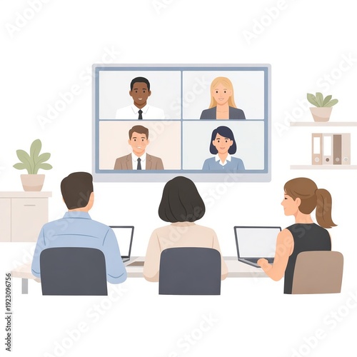 Flat Vector Illustration of Online Business Meeting with Video Conference