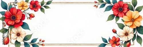 Floral wreath with bold lines and patterns, vintage, illustration style