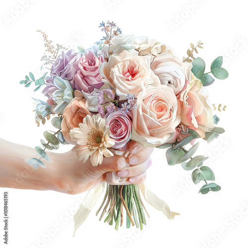 Flowers in Bride's Hand Clipart Vector Illustration