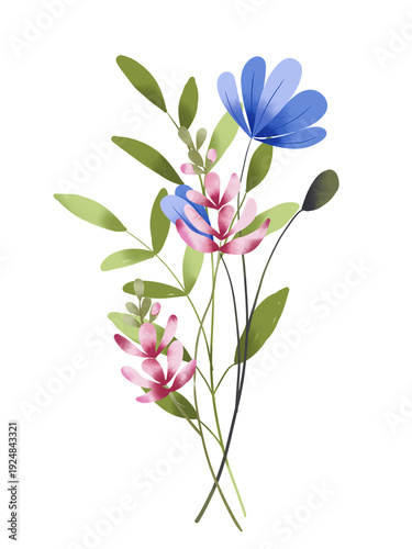 Flowers, leaves spring floral clip art. Bouquet perfectly for printing design on invitations, greeting cards, posters and other. Isolated on white background. Hand painting.
