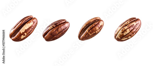 Four Pecan Nuts Isolated on Transparent Background Perfect for Food Photography and Packaging Design