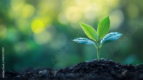 Fragile seedling emerges into a soft focus green world, embodying new life