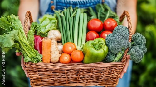 Fresh Harvest Basket of Vegetables Farm to Table Produce Green Red Orange Healthy Ea