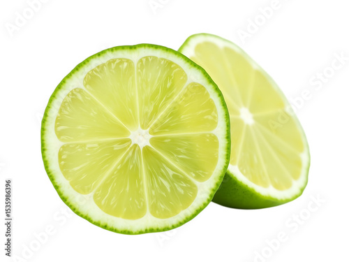 Fresh lime slices with juicy texture, isolated on white background, flat view neatly arranged,