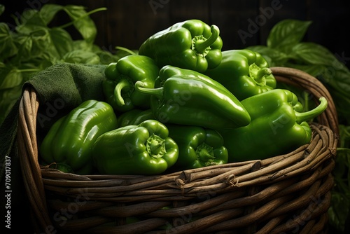 Freshly picked peppers in basket, harvest of peppers, supermarket vegetable sample illustration, fresh peppers illustration