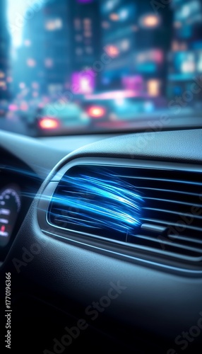 Futuristic Automotive Interior with Glowing Air Conditioning and Cyber Style Ventilation Airflow