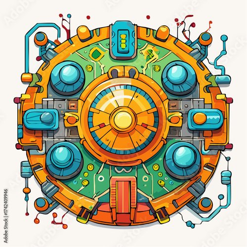 Futuristic circuit board, viewed from a high angle, vector illustration