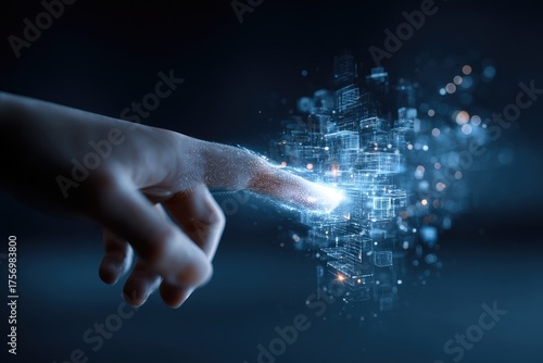 Futuristic image of a hand touching a glowing structure representing data visualization