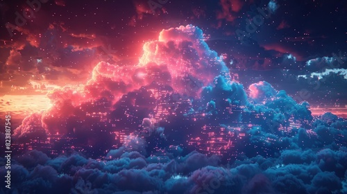 Futuristic Style Cloud Computer concept colorful background with cyber security