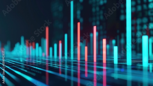 Futuristic Tech Growth Visualization, an upward-trending bar chart representing advancements in technology, includes ample space for promotional messaging and branding opportunities.