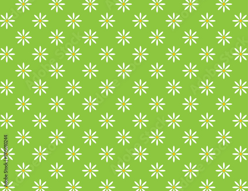 Gambar ilustrasi background pola bunga daisy (aster) berulang dengan latar belakang hijau