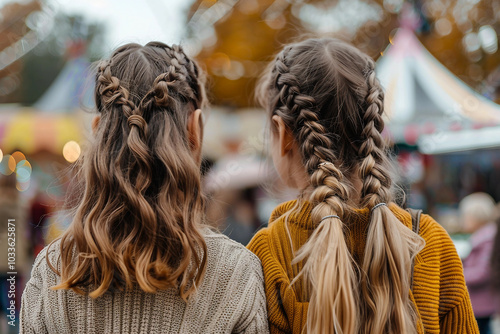 Generative AI image of beautiful autumn fair market with man woman kid family time perfect for fall harvest festival entertainment themes