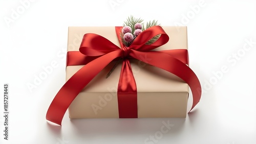 Gift box with ribbon on white background, holiday concept, minimal style