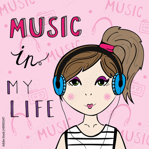 Girl listening to the music.