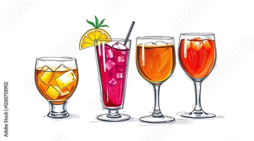 Glasses with alcoholic cocktail drinks