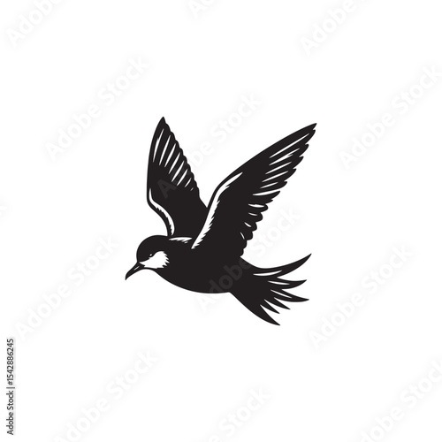 Gliding Petrel Silhouette Vector Art – Graceful Seabird Design with Outstretched Wings, Minimalist Black Outline Ideal for Ocean Wildlife Themes, Nautical Graphics, Logos, and Decor