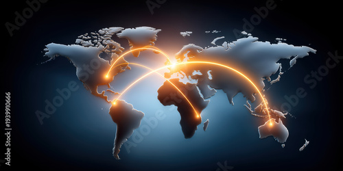 Global network connection map with glowing arcs showing oil crisis impact and shifting trade