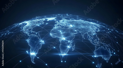 Global network connections with blue dots and lines symbolizing data transfer and modern business technology -