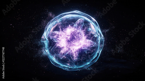 glowing atomic structure with vibrant colors and cosmic background, representing energy and matter