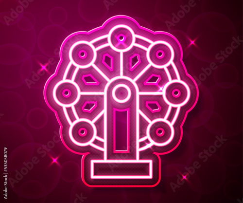 Glowing neon line Ferris wheel icon isolated on red background. Amusement park. Childrens entertainment playground, recreation park. Vector