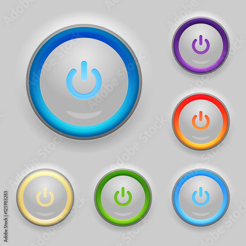 Glowing Power Button. Set. Vector