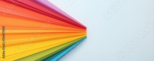goal of life balance passion concept. Vibrant colored paper sheets arranged in a rainbow gradient on a clean white background.