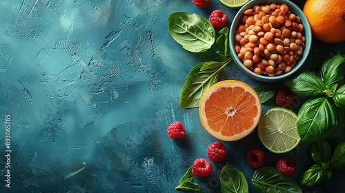 Goals for healthy eating and flexibility, photography, arranged on a minimalist concept style. Long shot, isolated background. Space for text.