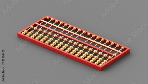 Gold Beads on Red Abacus in 3D Rendered Design for Educational Use
