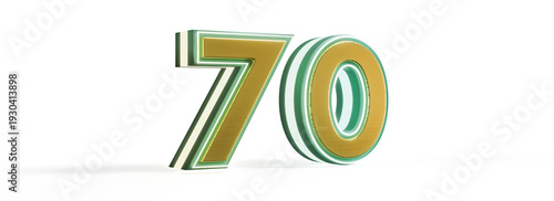Golden 3D Number 70 with Neon Glow, Isolated on Transparent Background, High-Resolution Illustration