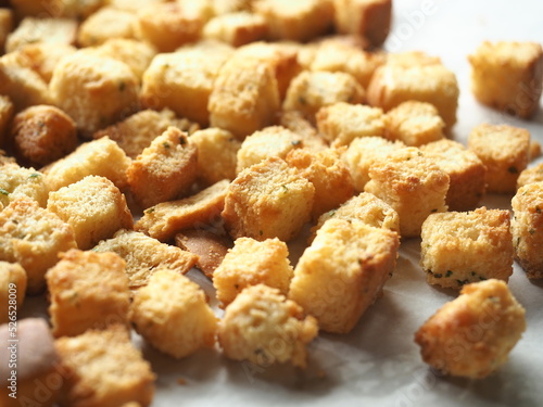 Golden crispy butter garlic croutons