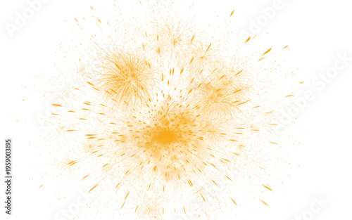 Golden firework explosion on white background, festive orange spark burst illustration, glowing light particles and celebratory starburst effect