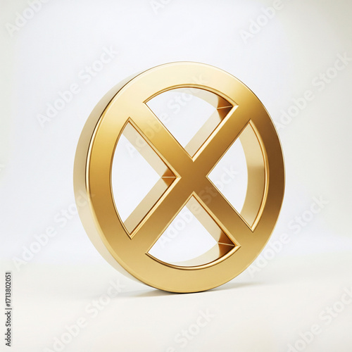 Golden "prohibited" sign, isolated on a white