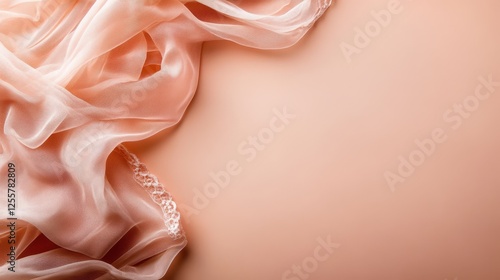 Graciously flowing light peach fabric on a warm-toned background creates an inviting and tender atmosphere, perfect for artistic endeavors and romantic imagery.