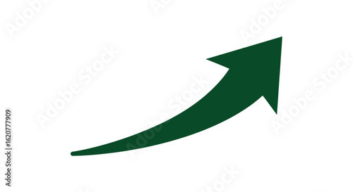 Green arrow pointing upwards, symbolizing growth and progress, isolated on white background