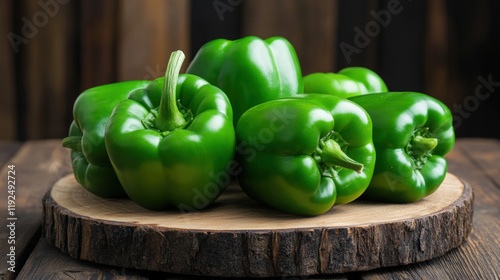 Green Bell Peppers on Rustic Wooden Board