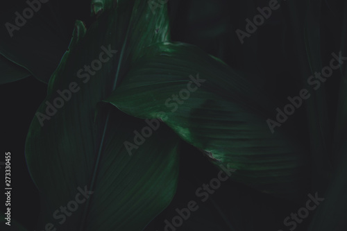 Green leaves pattern background. Flat lay. nature dark green tone background