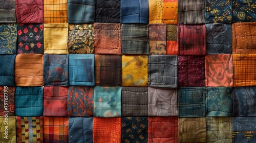Grid Art: A photo of a patchwork quilt, featuring squares of fabric arranged in a grid
