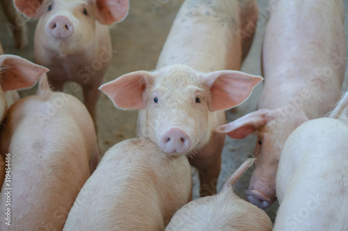 Group of pig that looks healthy in local ASEAN pig farm at livestock. The concept of standardized and clean farming without local diseases or conditions that affect pig growth or fecundity