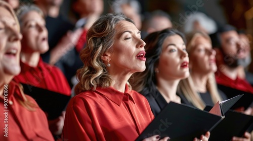 Group of women singing together in harmony, perfect for musical or cultural events