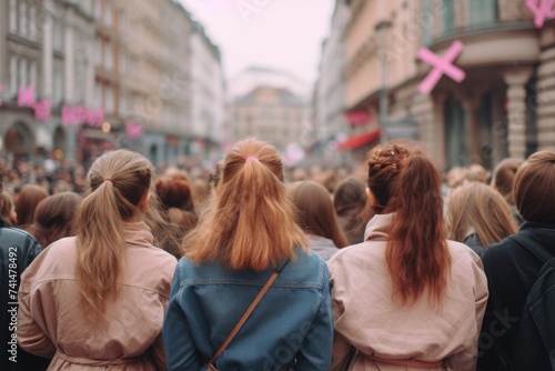 Group of women walking down a city street, suitable for urban lifestyle concepts