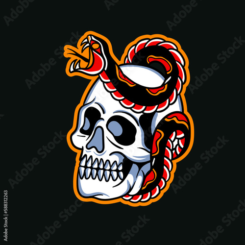 Hand drawn illustration of skull and snake