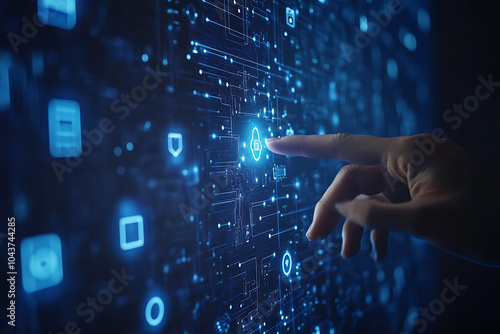 hand pushing a button on a touch screen interface