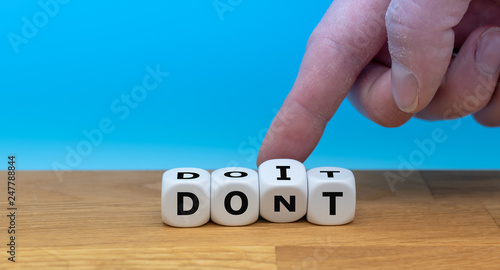 Hand turns dice and changes the word "don't" to "do it". Personal change yourself concept.