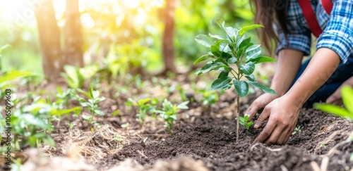 Hands Planting a Young Sapling in Fertile Soil, Emphasizing Environmental Conservation and Sustainable Growth in Nature