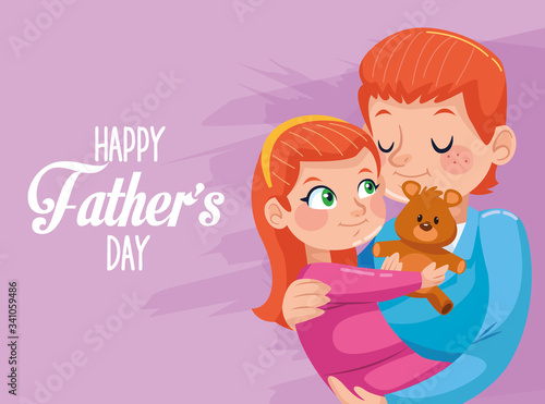 happy fathers day card with dad carring daughter