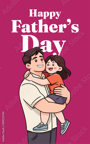 Happy Father’s Day Greeting Illustration with Loving Father and Daughter